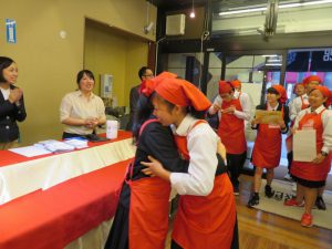 「すいません。お客様に机を拭いていただいてありがとうございました。どうしてもパンを扱っていると粉が落ちてしまって・・・。」と。
