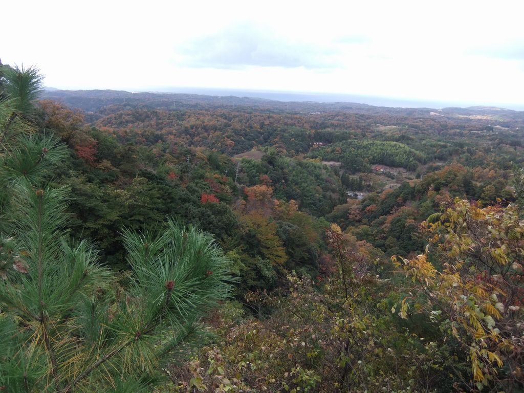 道中、那珂グリーラインの途中で、紅葉の山々を望めるところから1枚。
