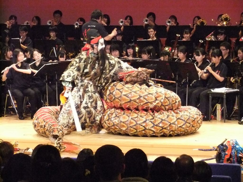 これまた、吹奏楽部の生徒が舞っていた。蛇の中には女の子も。