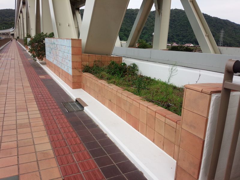 歩道の3か所が少し広くなっていて、座るところもある。