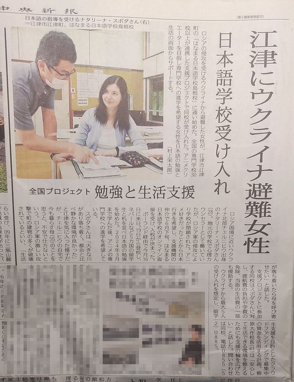 江津市の「はなまる日本語学校」に、ウクライナからの避難女性が入校した。と。