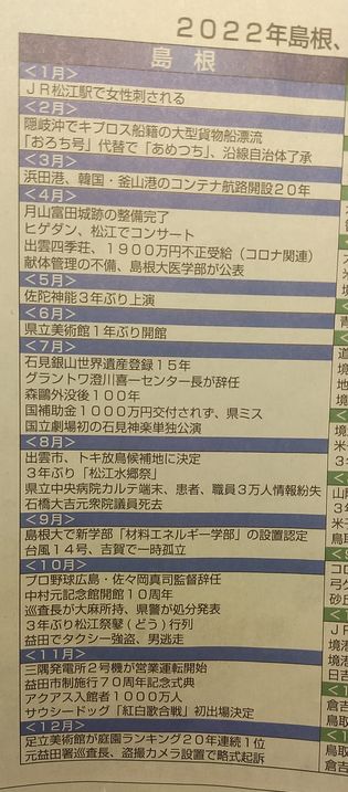 例年ですと、山陰中央新報の島根県の10大ニュース発表なのですが、今年は山陰の10大ニュースでの発表です。