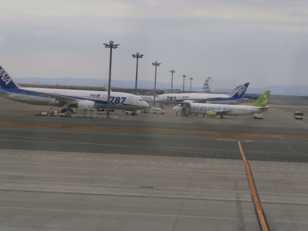 羽田空港で、待合室から駐機場に止まった787を発見。