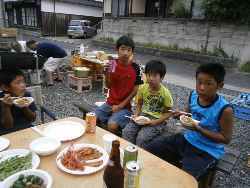 従来は、子供たちにキス釣りの楽しさを味わってもらい、その釣果を夕方からのバーベキューに出すこととしていたが、町内の小学生が3名となり、今年のキス釣り大会は中止。