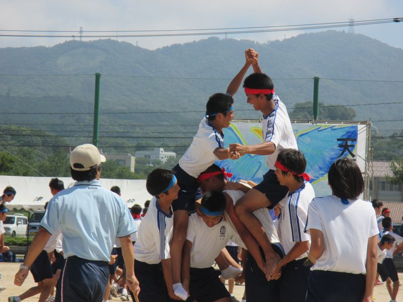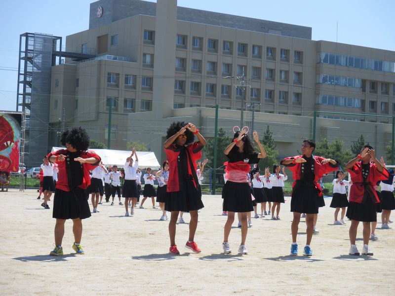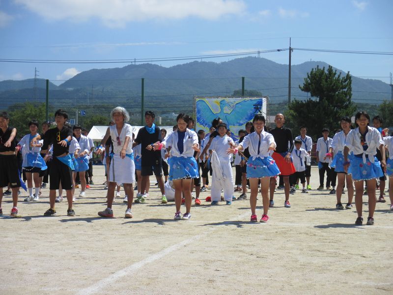 今から5年ぐらい前に、同校の運動会を見た時は、応援合戦のダンスは、各チームともに、女子が引っ張っていると感じたが、今回は男子も堂々と自己主張。