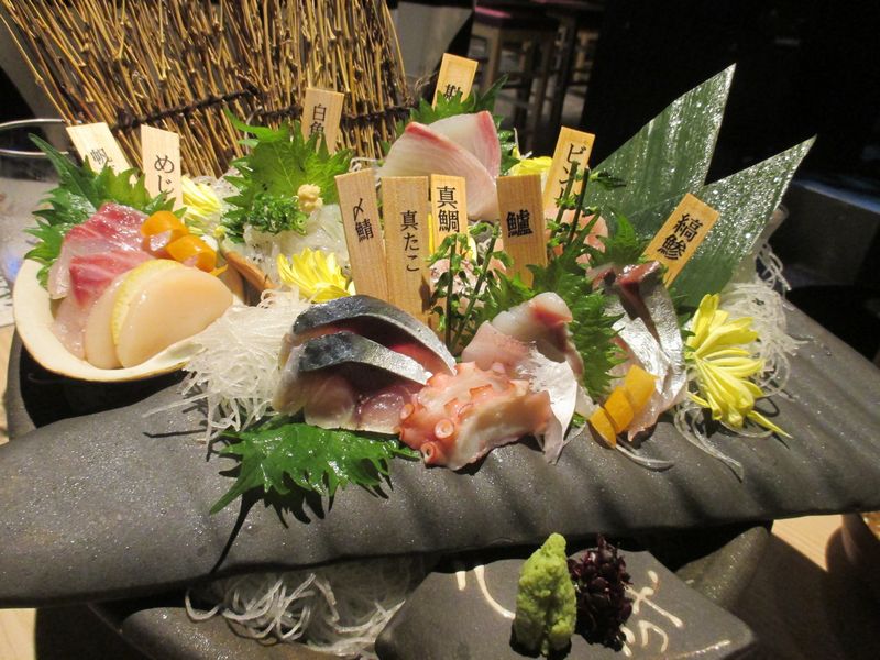 「お二人様用 刺身5点盛り 1280円 出来ればマグロ系は無しで・・・。」を注文。