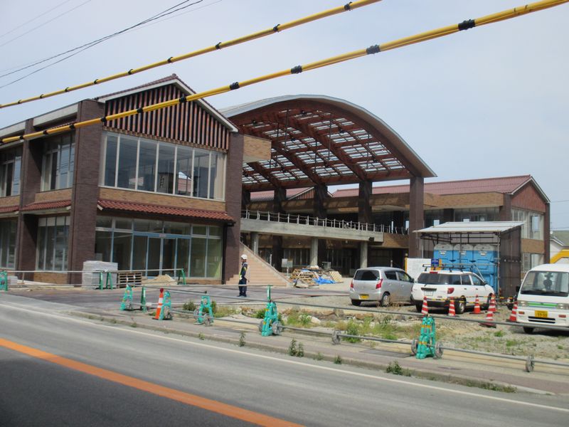 江津駅前の公共施設の工事が進み、足場が取れ外観が明らかになりました。