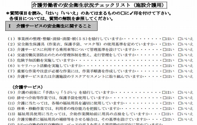 しかし、「厚生労働省・中央労働災害防止協会発行介護労働者の安全衛生チェックリスト」によると、下記画像にある様に、1行目が5Sの励行。