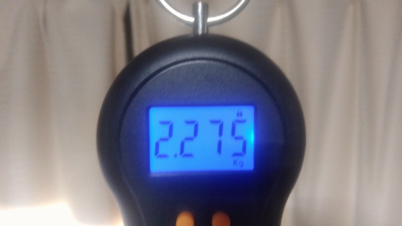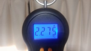 30枚以上になった時から、もう数えられなくなり、何かいい方法は?と思いついたのが、釣りの時に使う計りを利用して・・・・。
