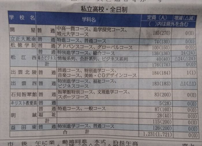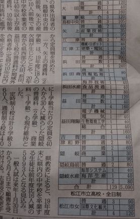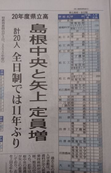 島根中央高校と矢上高校の定員が増えたのも、この影響の様です。