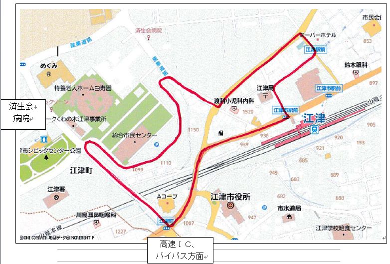 とは言っても、上記地図の下側にある「高速IC、バイパス方面から、済生会病院に入る緊急車両のルートとなっており、見学者がどのくらい来られるのか不明ですが、その方々の動きによっては、救急車が迂回路を使うにしろ、問題が発生しなければ良いのですが・・・。