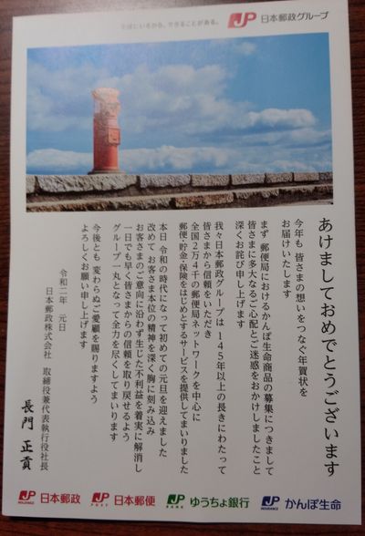日本郵便は、令和初となる年賀状の配達出発式を、かんぽ生命保険の不適切販売問題を受け、ともに5日付で引責辞任する日本郵便の横山邦男社長、親会社である日本郵政の長門正貢社長は欠席。と。