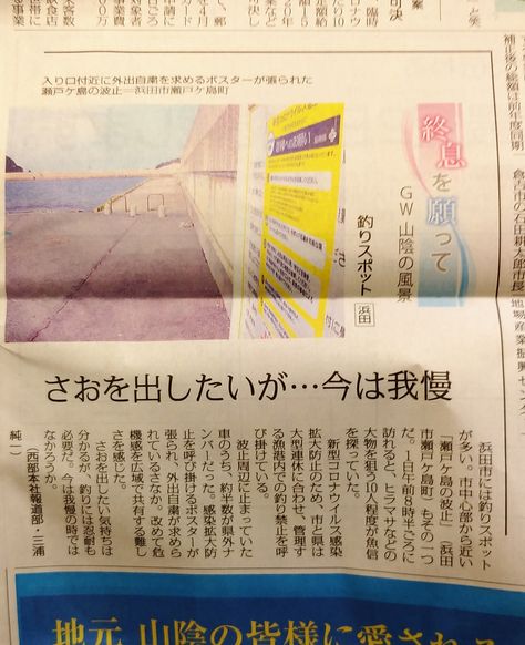 今朝の朝刊に「終息を願って」という記事の中に、時々出かける浜田市瀬戸ケ島の事が・・・。