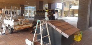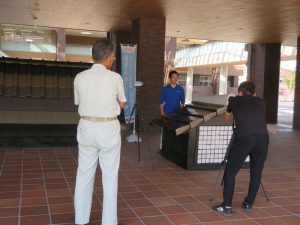 午前中、駅前を通った所、知り合いが”パレットごうつ”の広場で、何やら作業中で、ご機嫌伺いで行ってみると、「オーストラリア向けWeb展示会用の撮影」と。