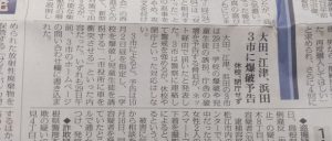 上記の新聞記事は、30日に掲載された物で、予告は、29日に各市のお問い合わせ欄に入った様です。