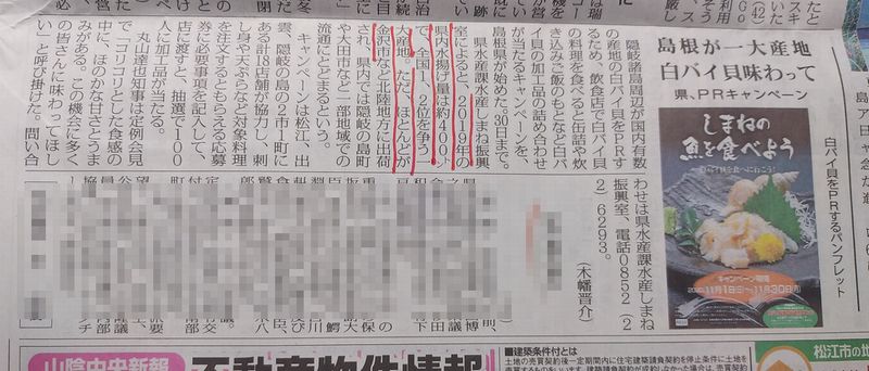 そのバイガイは、島根産だったかな?