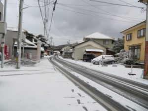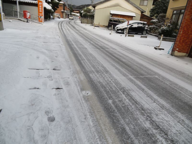 積雪は、少しですが、今朝(1/8)は、道路は歩くのも怖いほどツルツルです。