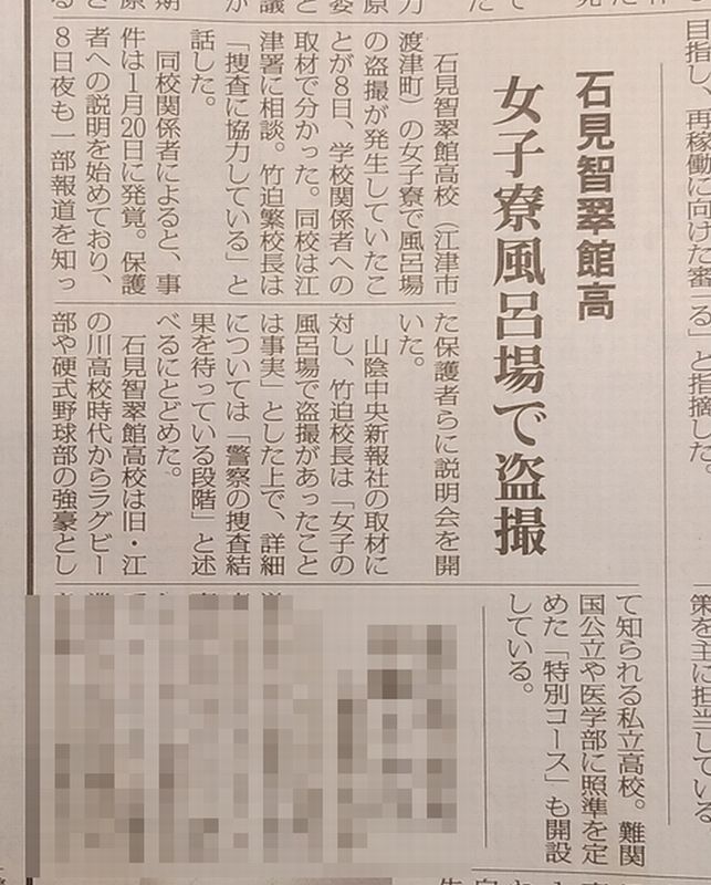 記事によると「1/20に女子寮の風呂場の盗撮が発生した。」と。