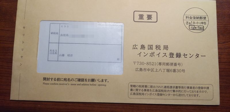 これで、令和5年10月1日以後の発行の請求書、領収書等には、このインボイスNOを記すこととなります。