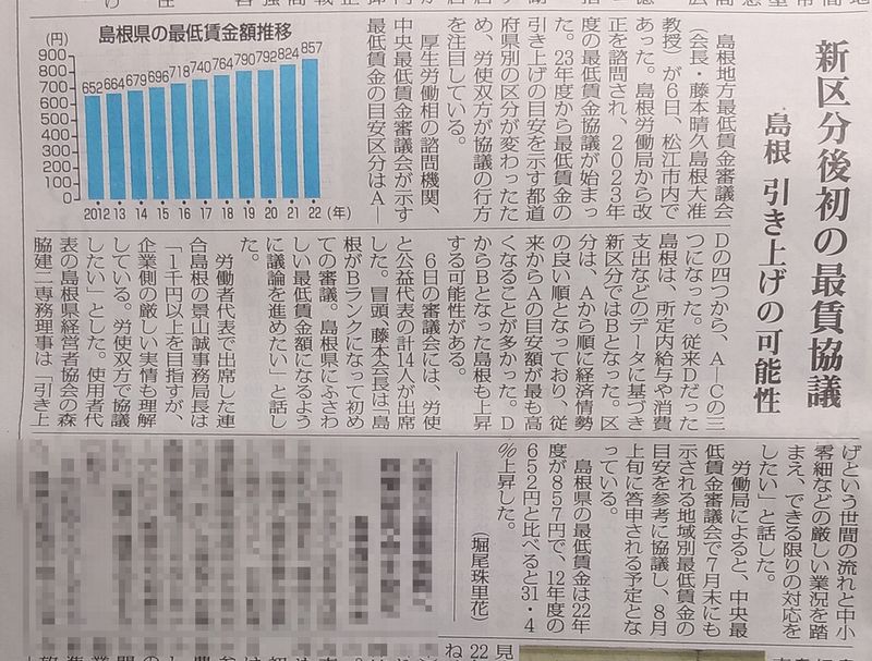 島根地方最低賃金審議会が開かれた様です。