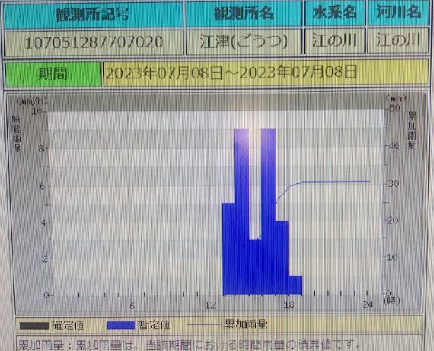 ここは、島根県西部で、江津沖を線状降水帯は、通過した様で、この辺りでは、午前中は、パラパラ程度で、14時過ぎにバケツをひっくり返したような、凄い強い雨が降りましたが、それ以外は、弱い雨が降り続く天気でした。