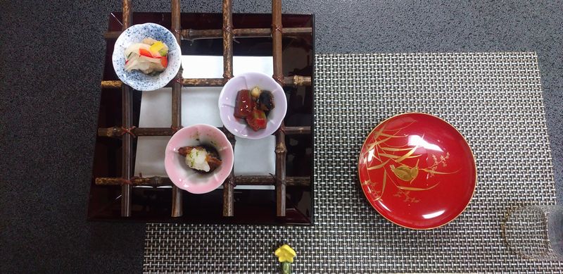 東京では、ちょっとしたコースをお願いすると、上記の写真の様な先付だと3品とカウントされています。(すべてでは無いと思いますが、普通は、3品のカウントです。)