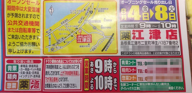 生鮮食料品から電気商品、薬、酒、雑貨等のディスカウントストアーとなっています。