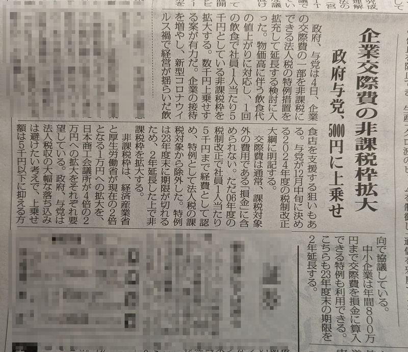3年間ぐらいは、コロナによる接待が少なくなっていたと考えられ、飲食店の利用拡大も含め、後押しとなると思われ、早期に結論を出し、即刻施行にしてほしいと思います。