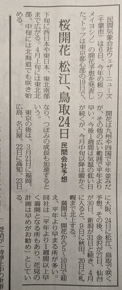 この辺りの桜は、3/24に開花との予報が出ました。