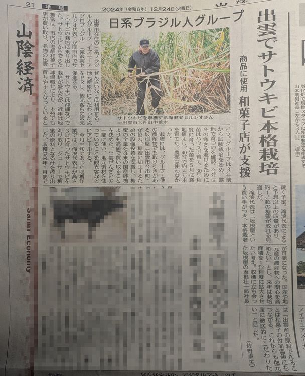 糖蜜に加工する設備も作り、出雲市内の和菓子屋が買い取り、「出雲産の砂糖」を使用として、販売している様です。