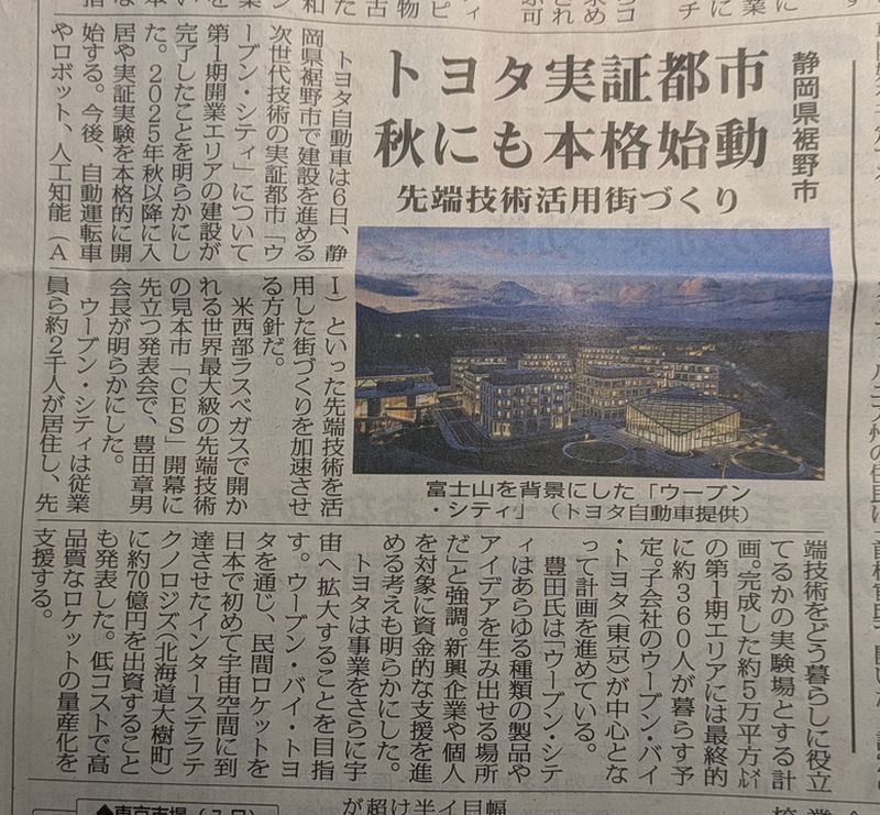 トヨタが4,5年前に発表した次世代技術の実証都市「ウーブン・シティ」を今年の秋から入居や実証試験を本格的に開始する。と。