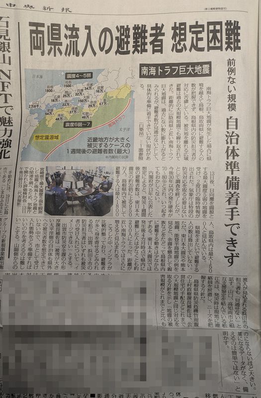 島根県は地震がほぼない、と思っている人が多いんでしょうか。