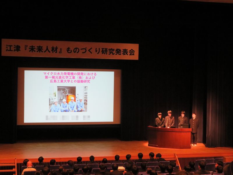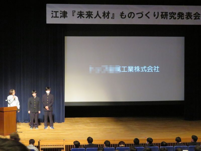 2部は、初めての試みとして、市内の企業と江津工業高校の生徒による「探求学習」として、各会社の動画を製作された物の発表が有りました。