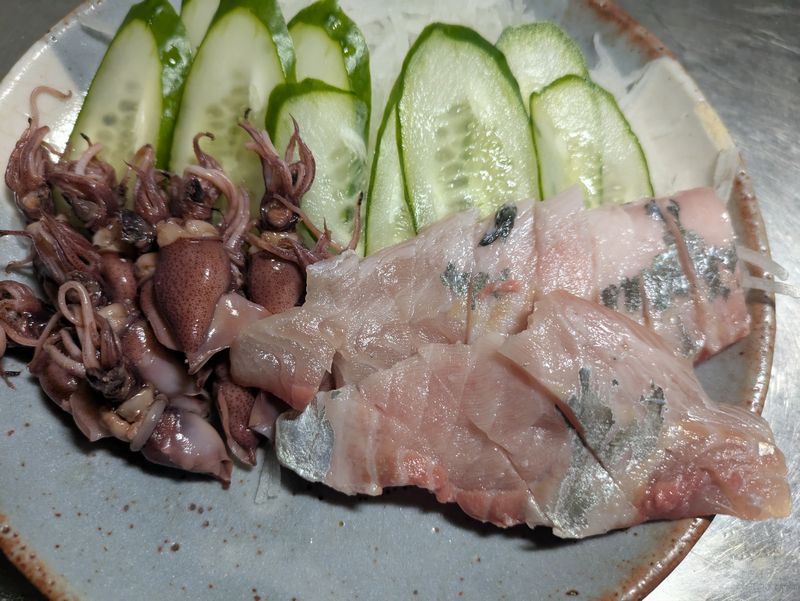 刺身では、「アジの味わいは少なく、やはりアジでは無いのかな?」と思いましたが、タタキにすると、味噌、しょうが、こねぎを混ぜ込んだ為か、”アジ”の味わいも出て来て、これは美味でした。(写真、撮り忘れました。)