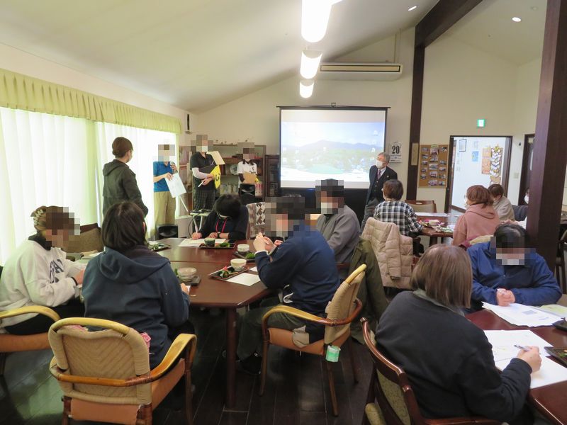 サンガーデン輝らら様の取り組みの紹介を頂いた後、施設内を3グループに分かれ見学させていただき、その後質疑応答をしました。