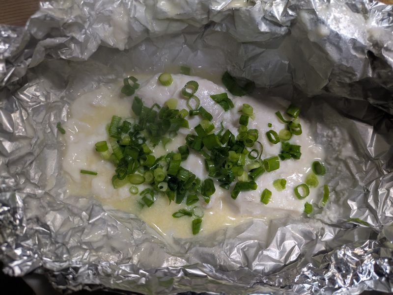 白子を少しのバターで、ホイル焼きにしたところ、白子から水分が出た様で、少々トロトロとなりました。