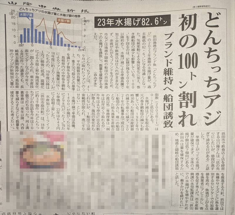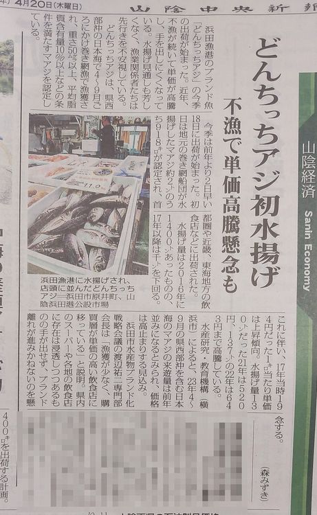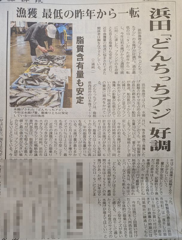 浜田の8月から10月の水揚げ量が、昨年比13%減少した。と。