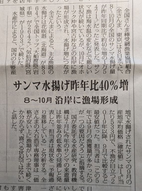 最近は、魚が捕れないとのニュースもありますので、漁場も大変な状態かと思います。