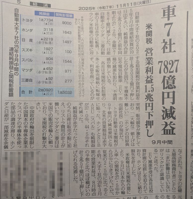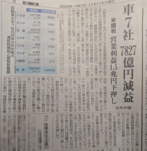 日産、マツダ、三菱自動車は、赤字に転落しています。(日産は、関税影響だけでは無いようですが・・。)