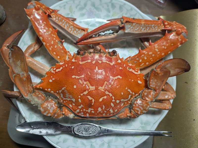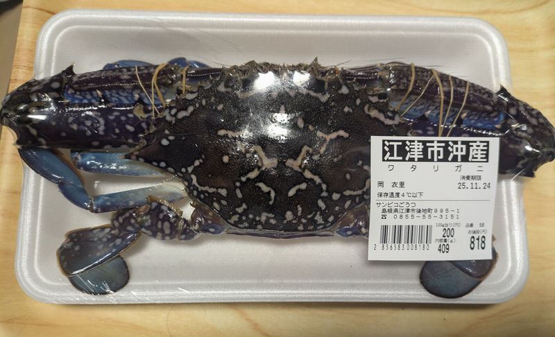 昨日、道の駅に顔を出すと、ワタリガニが並んでいて、一番大きいのを818円で購入。