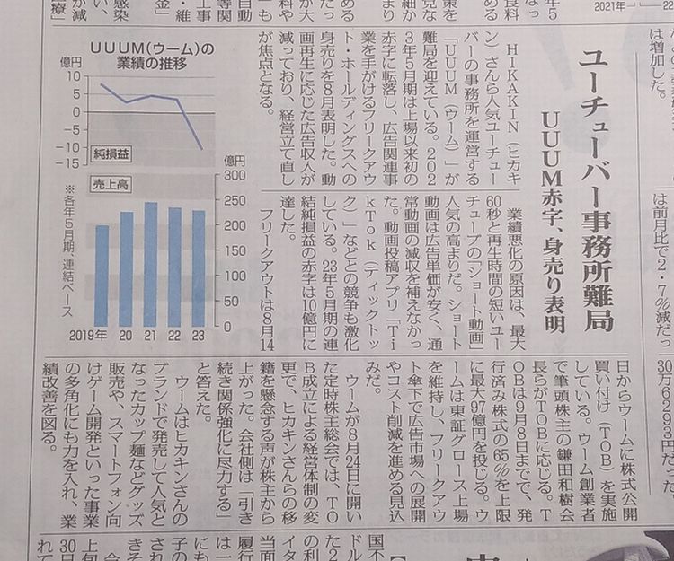 今日の朝刊で、良い様な悪い様な記事がありました。