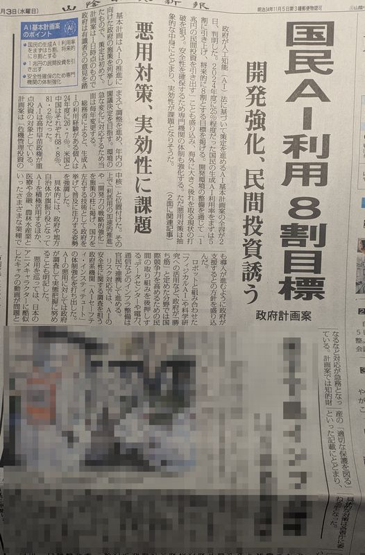 日本が、すべてのAIで劣っている訳では、無いようですので、このAI利用率の目標を出すのであれば、それに見合う開発費やその体制について政府がしっかり予算を付けていく必要があると感じます。