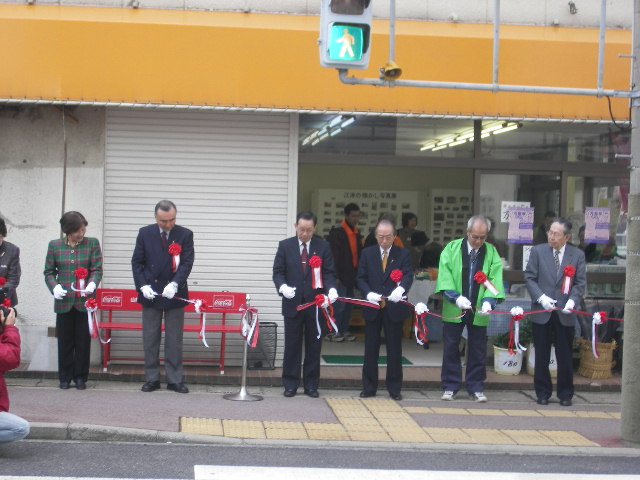 万葉の里商店会長の挨拶、来賓として田中江津市長の挨拶に続きテープカット。
