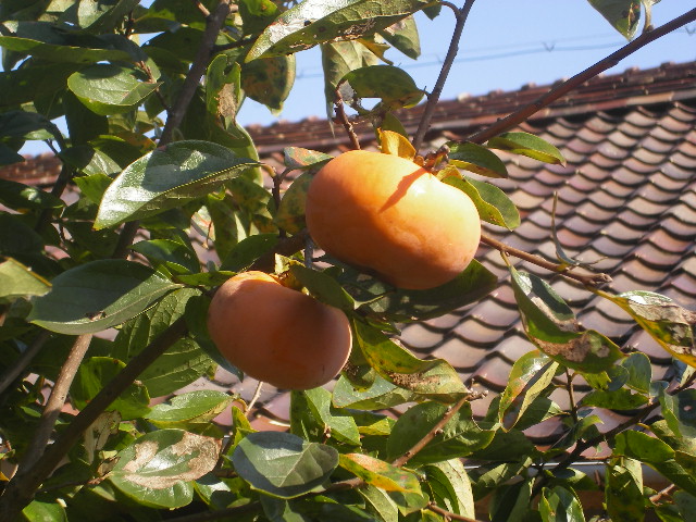 そんな秋に、中庭の柿が色づいてきた。
