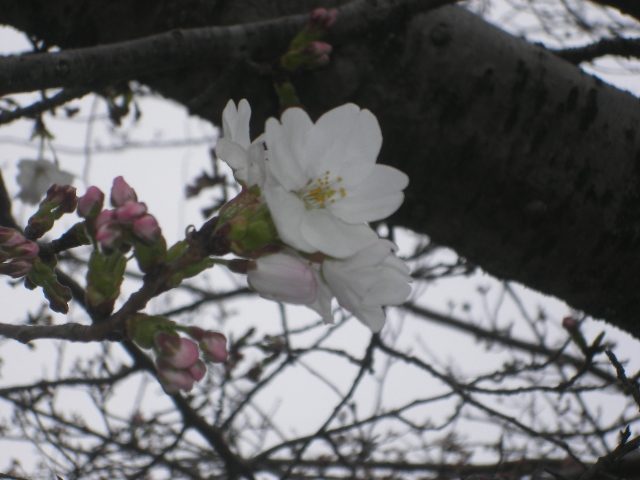 しかし、ここ2,3日気温が13度前後と少々低くなっていて、開花宣言が遅れるのかな?と思っていたが、なんと近所では開花していた。