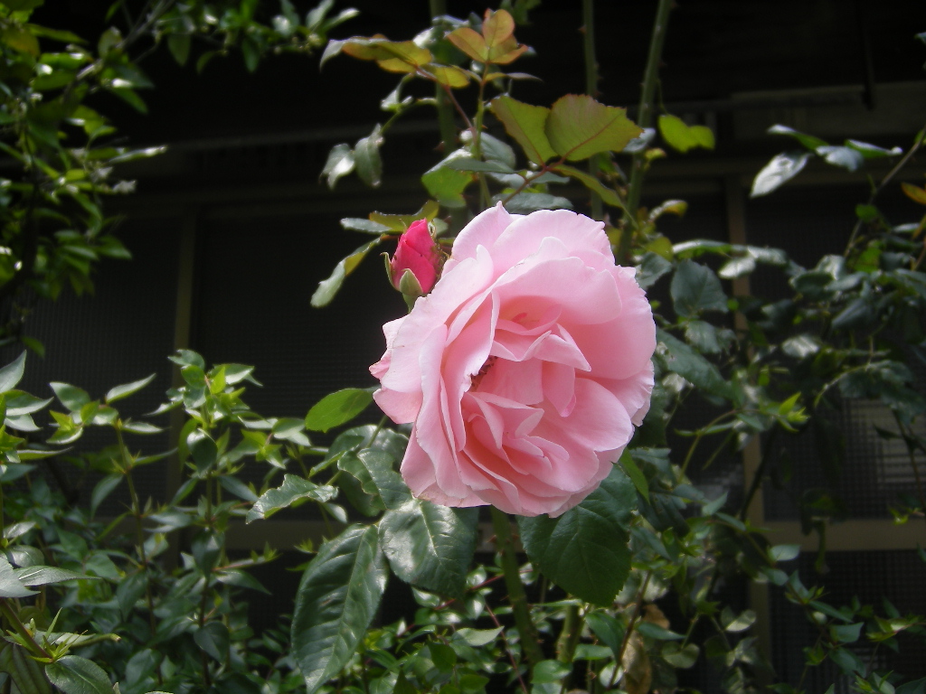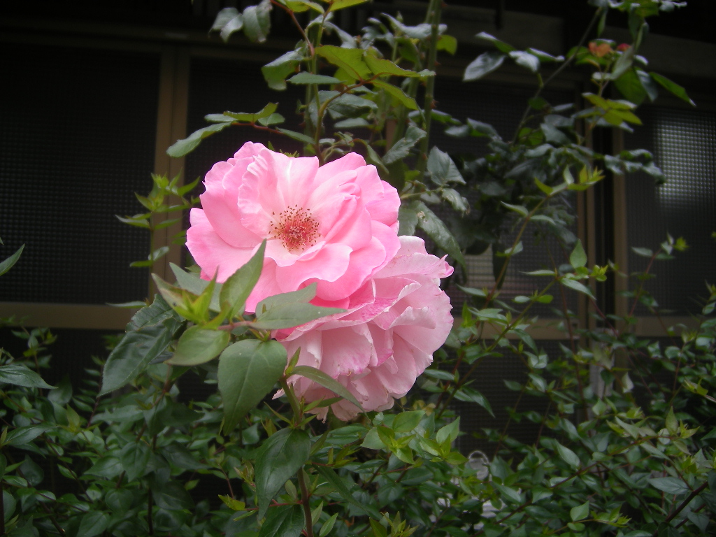 私と薔薇は似合わないが、我家の玄関先にピンクの薔薇が咲いている。