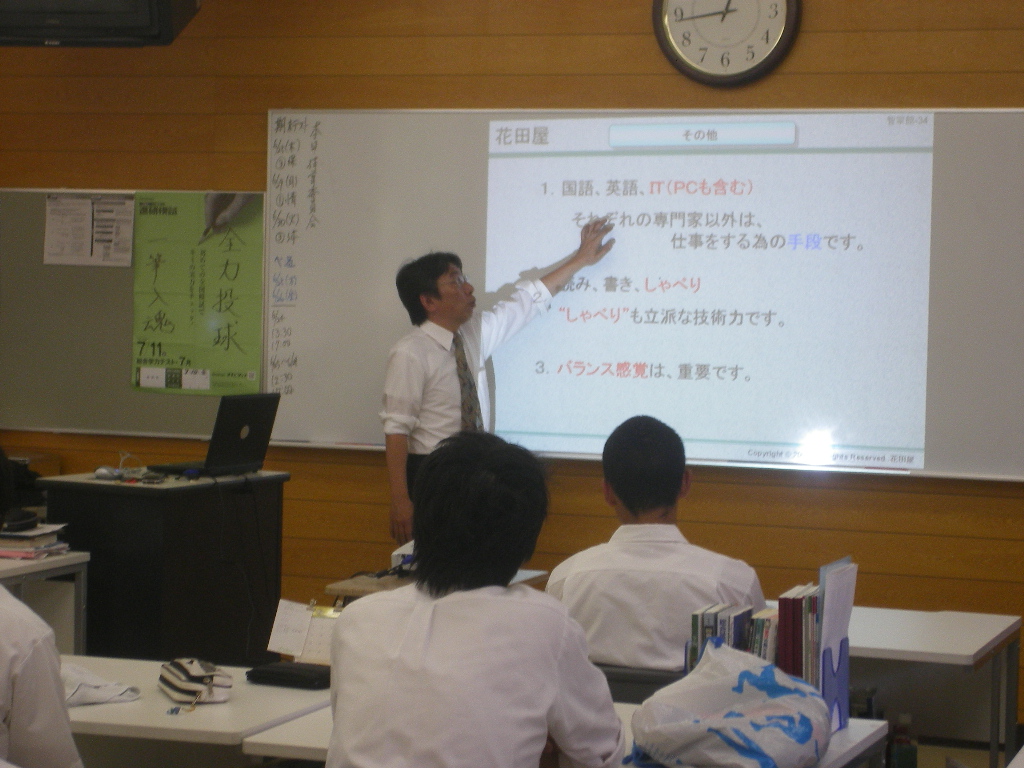 4/1“「えっ、私がですか?」”で紹介していた通り、本日(6/23)11:55から12:45まで、智翠館高校(旧江の川高校)の智翠館クラス(進学クラス)の1年生と2年生の一部の約20名に企業経験をお話した。