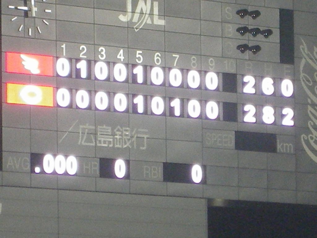 何となく、両チーム共に打てそうになく、次の日の事もあり、試合終了後になれば駐車場から出るのにも大変だろうと、ここで席を立った。