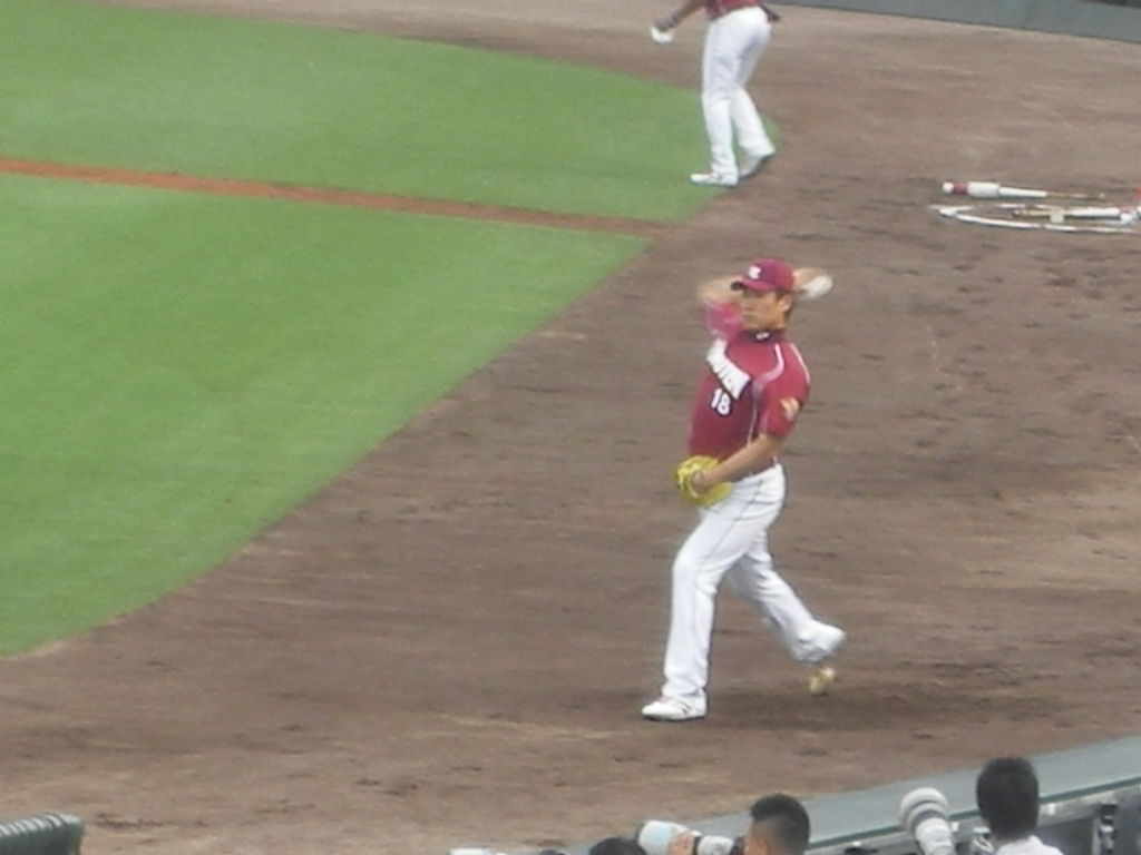 1アウトになったところで、マー君がキャッチボール開始