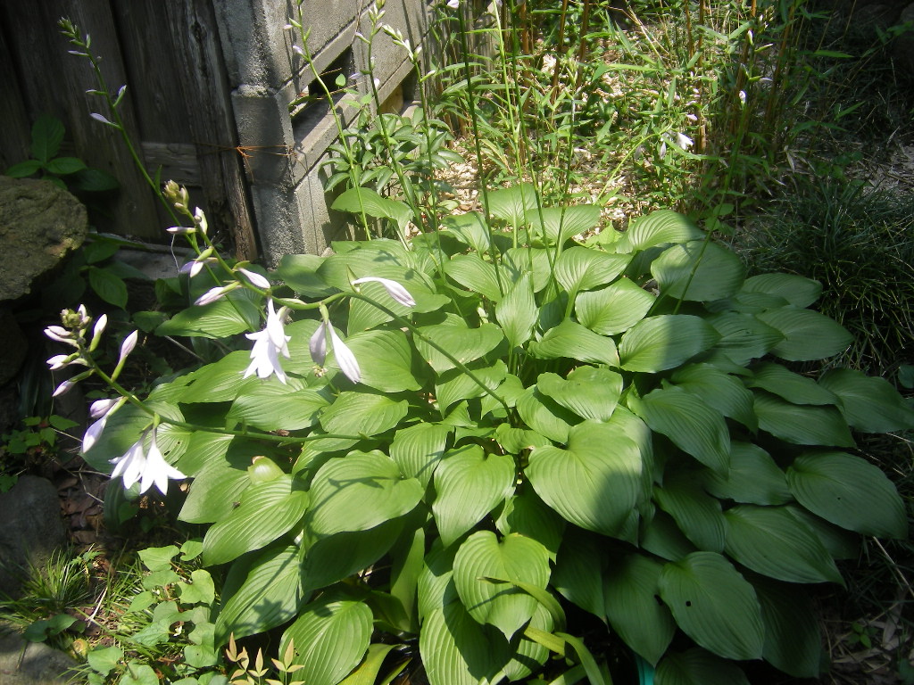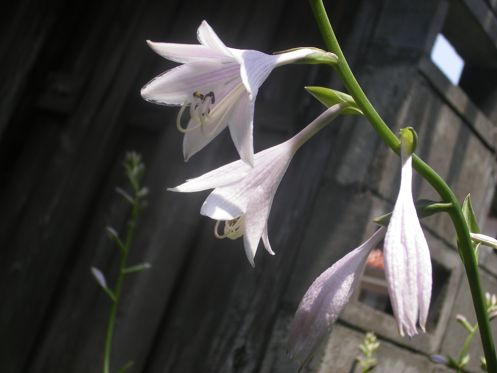 中庭ある池の傍に子供の頃から、この時期に薄紫の花を咲かせる植物が植わっている。